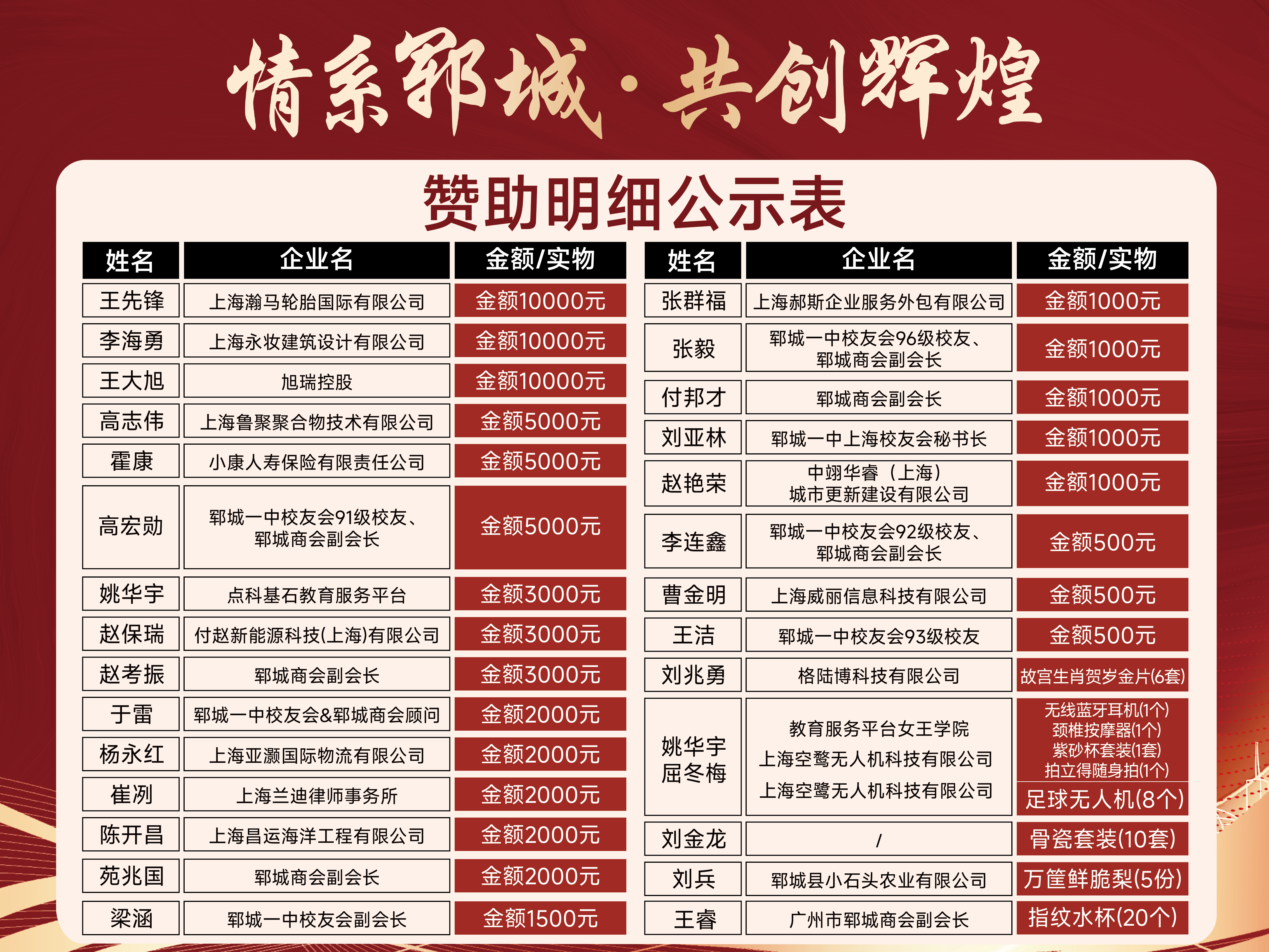 【郓城一中上海校友会1月6日年会赞助鸣谢】