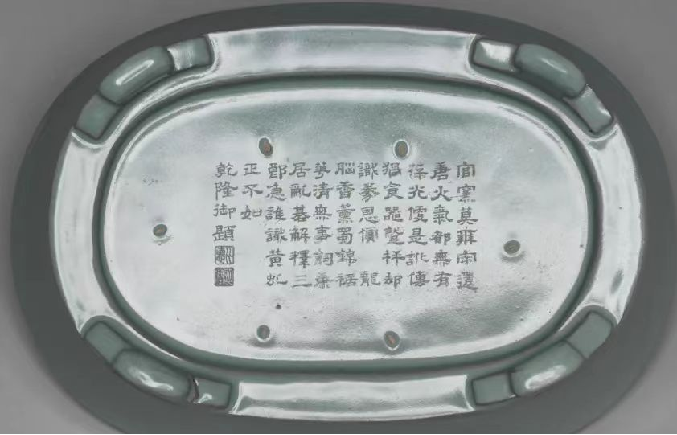 上图无纹水仙盆的底部,刻有乾隆咏赞的御制诗
