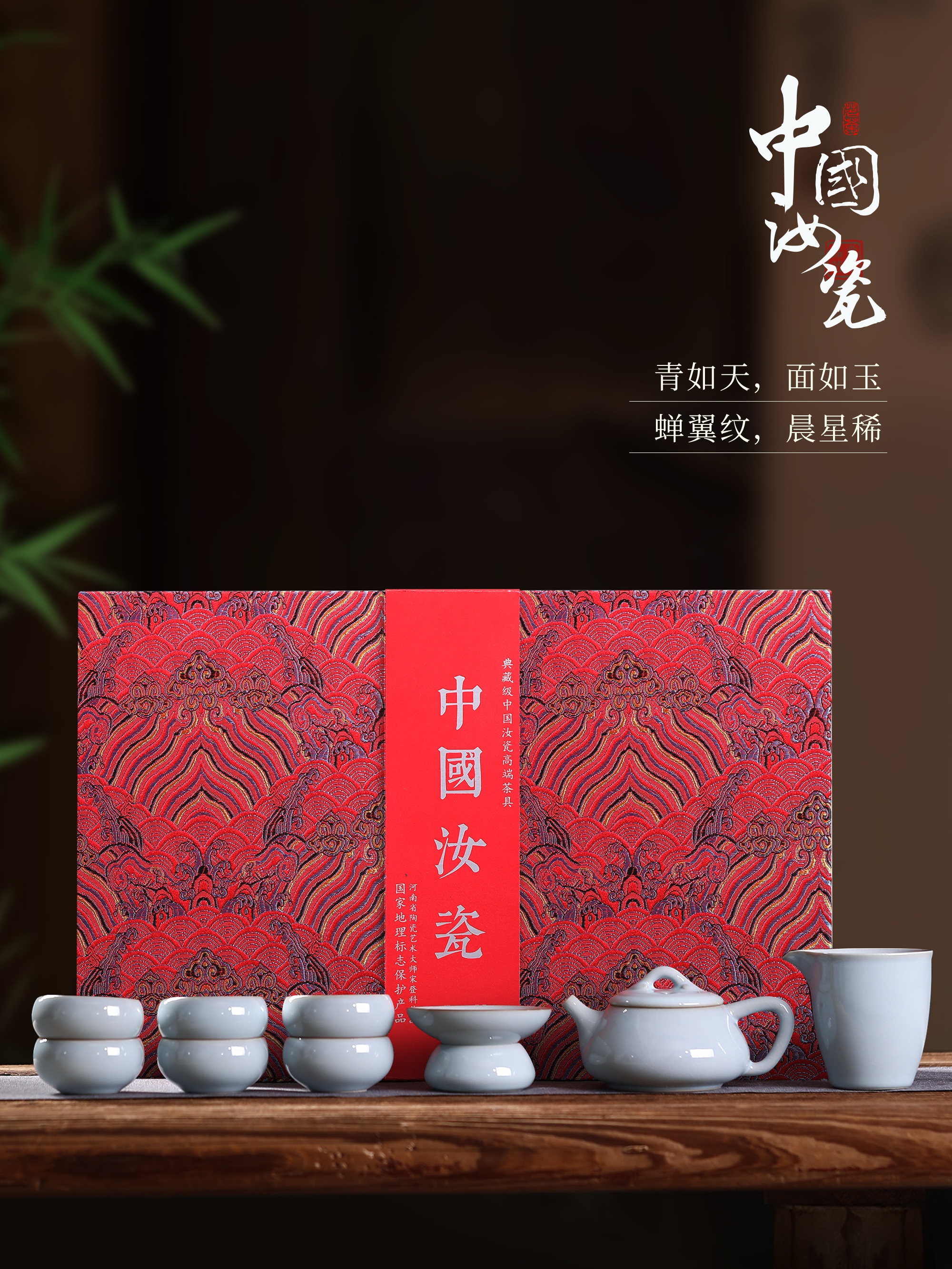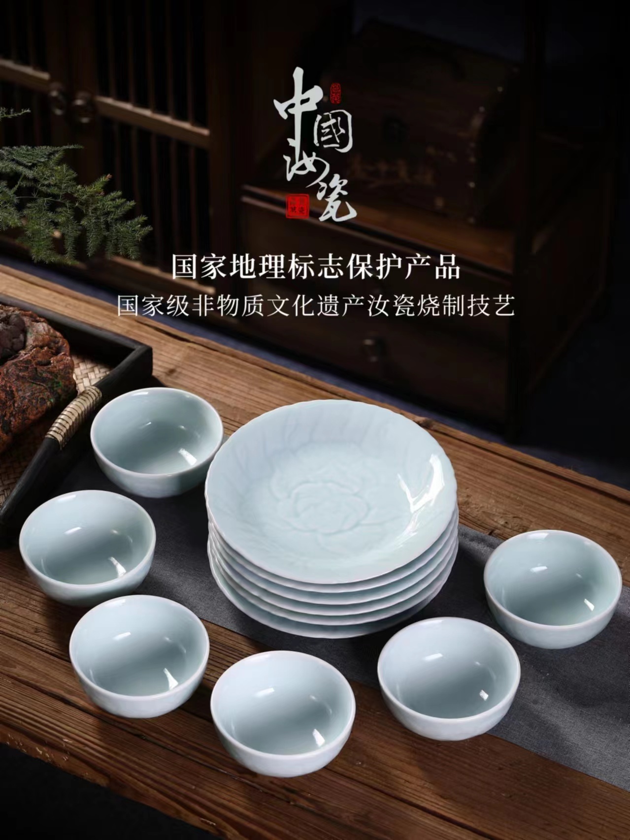 上图为中国汝瓷实用瓷茶具餐具