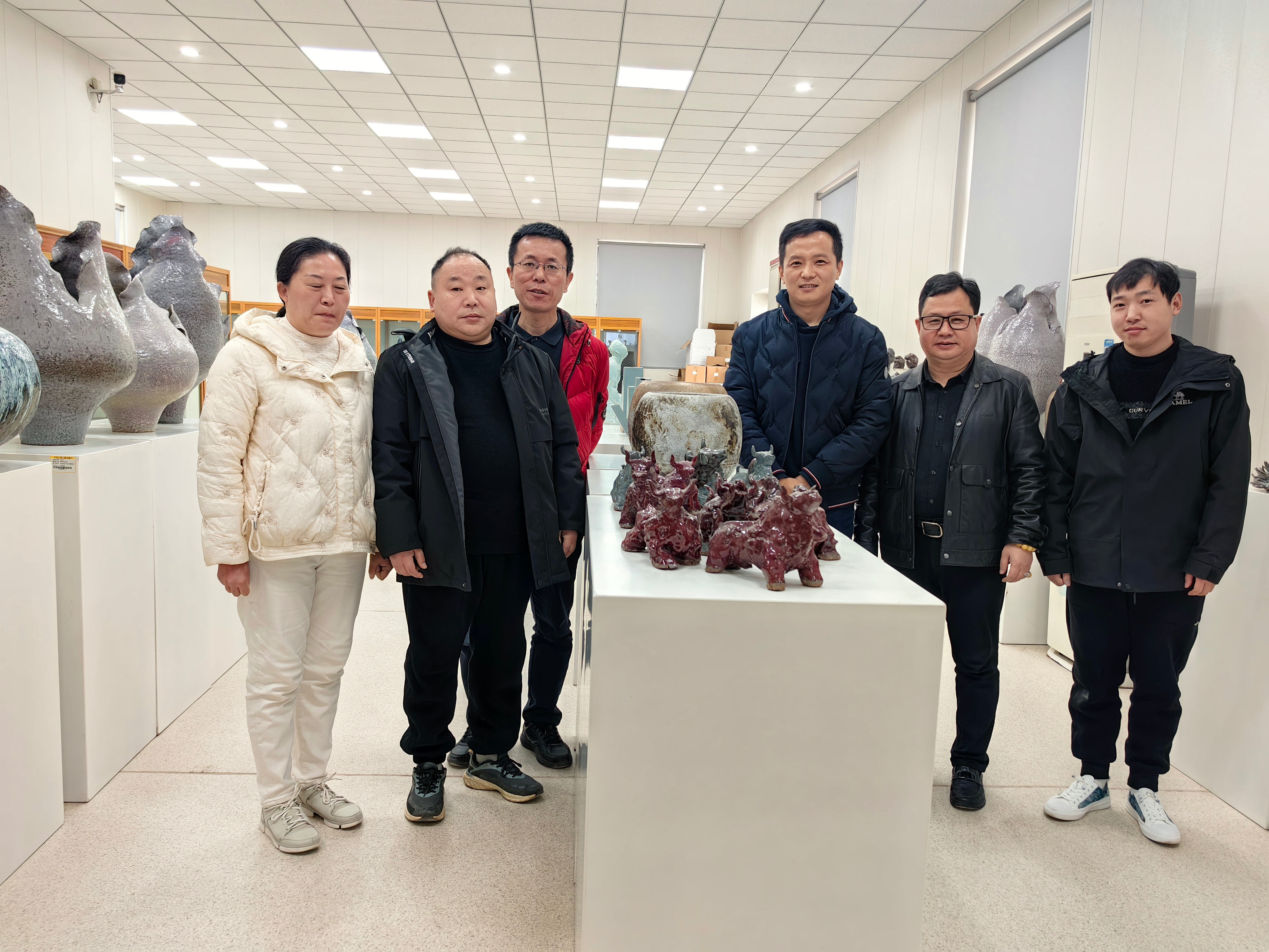 汝瓷大师级专家刘光甫老师、刘晓明老师和宝丰汝瓷研究所所长孙子龙老师与尚宝斋产业服务平台联合发起人在河南平顶山学院合影留念
